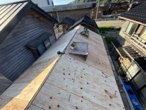 元々の下地がトントン葺きで弱かったので全面コンパネで下地補強したし🔨
