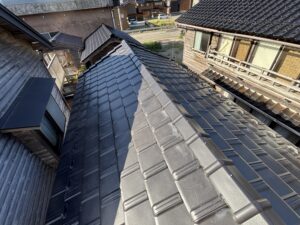 屋根形状がスッキリとした切妻だったので助かりましたが、これが寄棟や谷があるお家の葺き直しは手間がかかります