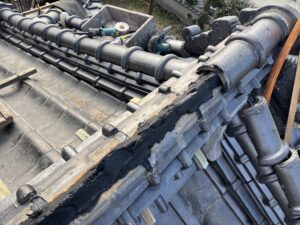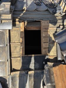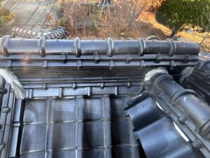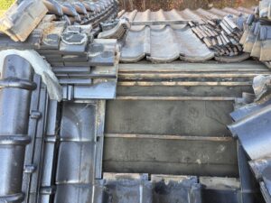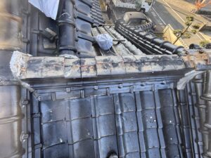 割らずに積んであったり勾配が多少死んでたりで微妙だけど、大棟は特に雨漏りにつながるよーな所は無いよーな
