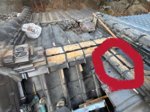 本当は上の赤丸部分みたいに利根丸の下にのし瓦を積むやり方は嫌いです😔